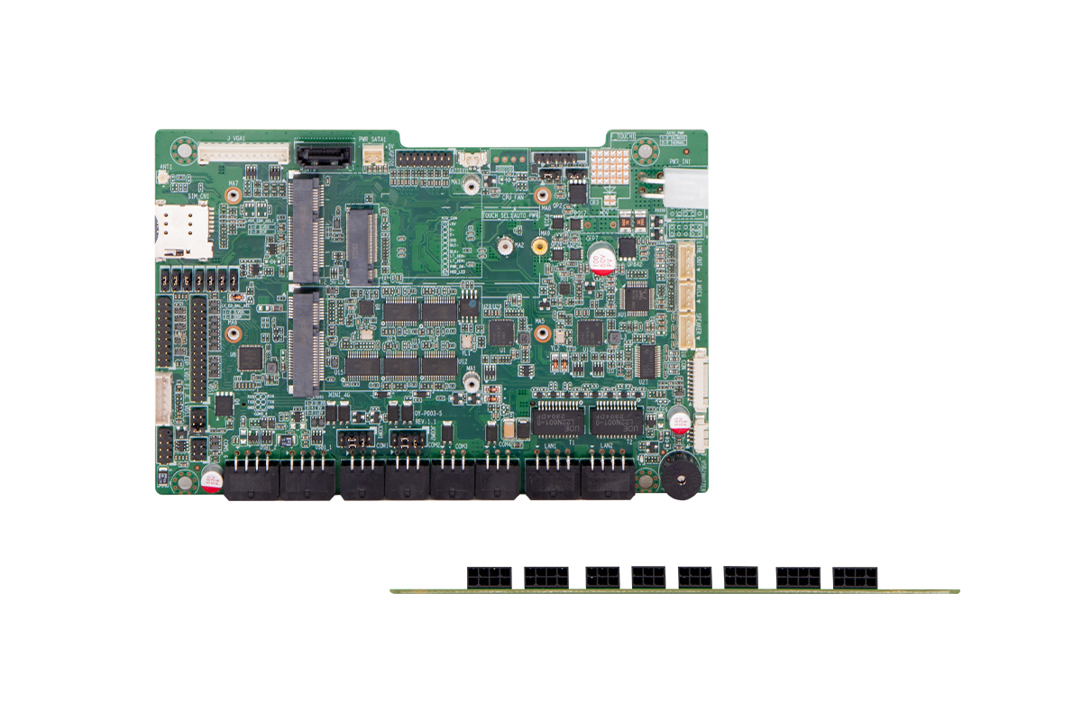 5*COM,6*USB2.0, 2*Gigabit LAN1*LVDS/eDP, 1*HDMI,1*VGA1*Mini-PCIe (4G/Wifi/BT) 1*M.2 3052 Key-B1*M-SATADC 12V Power Input
