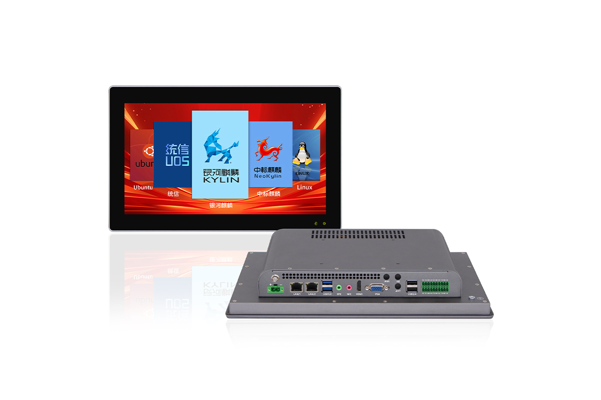支持國產(chǎn)麒麟/統(tǒng)信UOS系統(tǒng),支持2000+國產(chǎn)軟件前面板IP65級防水風(fēng)扇高效散熱設(shè)計支持面板嵌入式/VESA支架式安裝